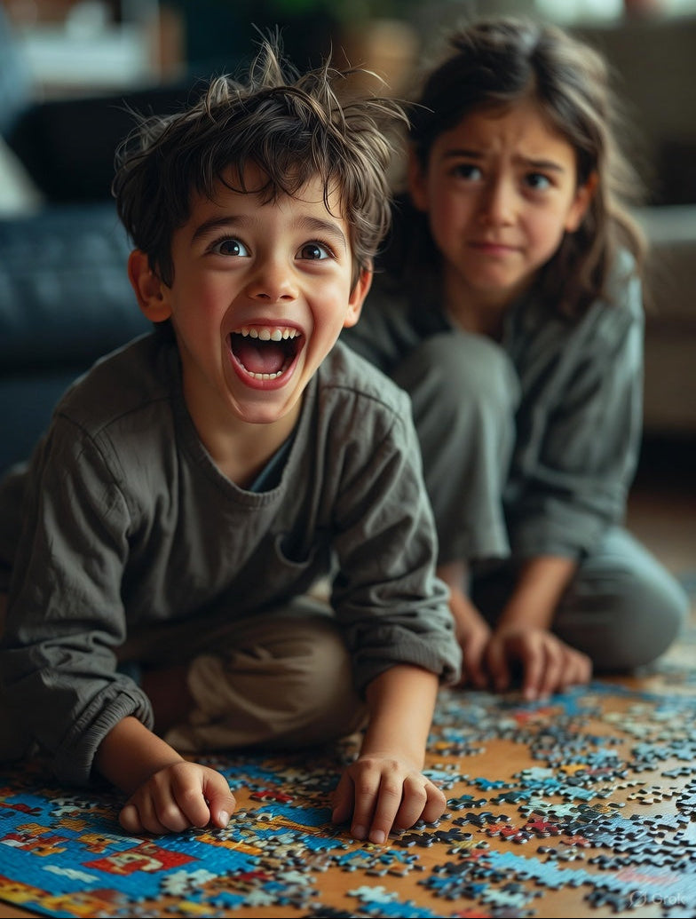 Brother-sister duo on a mission: fewer screens, more puzzle pieces—and just the right amount of arguing over corner pieces. 😉🧩
