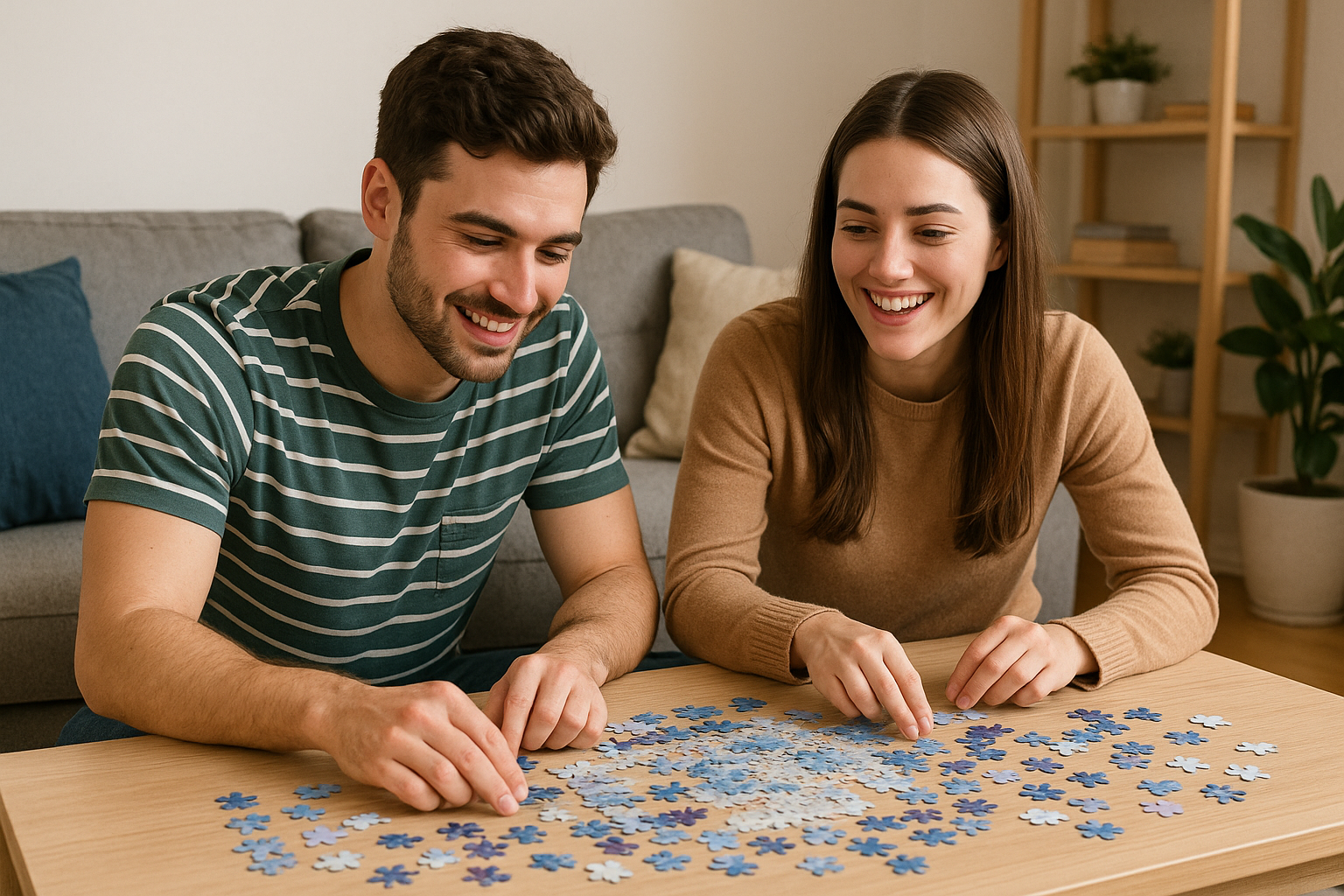 Brother-sister duo on a mission: fewer screens, more puzzle pieces—and just the right amount of arguing over corner pieces. 😉🧩
